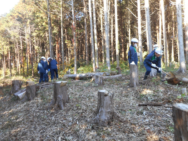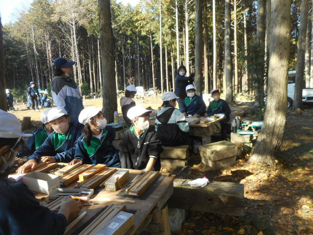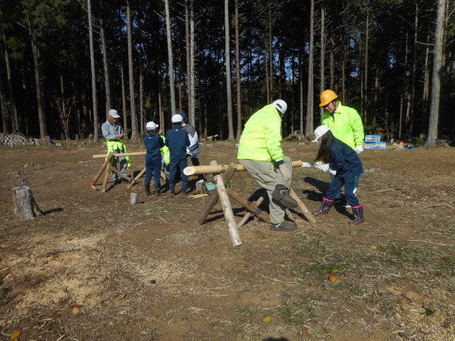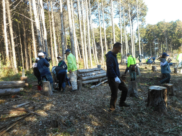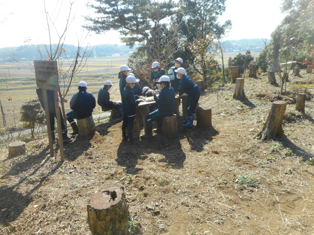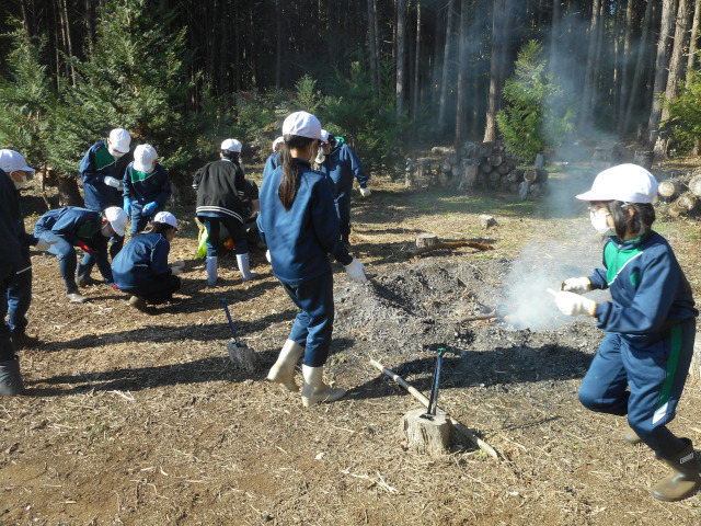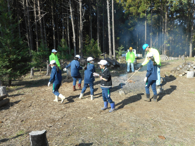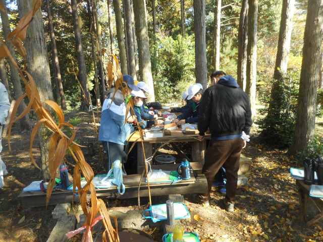 焚火に燃やす枝等拾っています。(消防署了解済み)